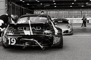 The sad aftermath of Charlene during the Idlers 12h endurance race of 2017. After it spun out and crashed the team driving it had to retire. In the back, a freshly built Adriana seems to be waiting her turn to race.